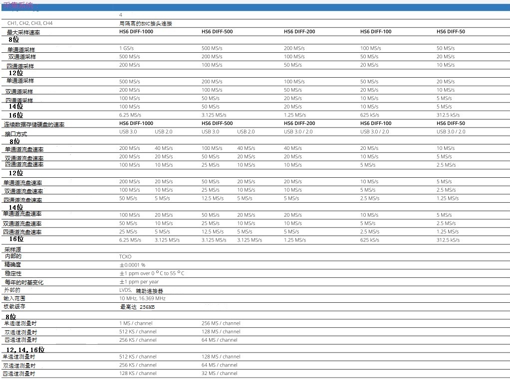 HS4 ---- 4路單端模擬輸入通道,每通道采樣速率,5MHz ~~~50MHz 50MHz單端模擬輸入是12 位精度, 3.3MHz單端模擬輸入,14 位精度, 192KHz單端模擬輸入,16 位精度,很好接駁Labview,Matlab,有大量例子用于二次開發(fā).價格是:7900~~~14800.