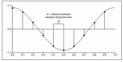 這個數(shù)列被稱為信號x(t)的數(shù)字化顯示或者采樣顯示。注意這個數(shù)列中僅僅用下標變量編制索引,而不含有任何關(guān)于采樣率(或Δt)的信息。所以如果只知道該信號的采樣值,并不能知道它的采樣率,缺少了時間尺度,也不可能知道信號x(t)的頻率。