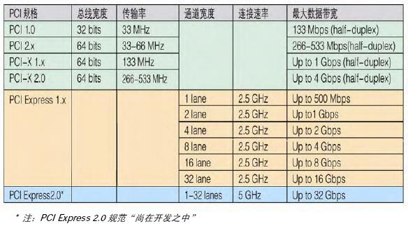 表1:PCI/PCI-X/PCIe 規(guī)格和帶寬