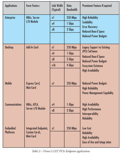 帶有內(nèi)置PCIe 端點(diǎn)模塊的 Virtex-5 LXT FPGA,能夠被用于任何一種外形的產(chǎn)品設(shè)計(jì),如表2所示。