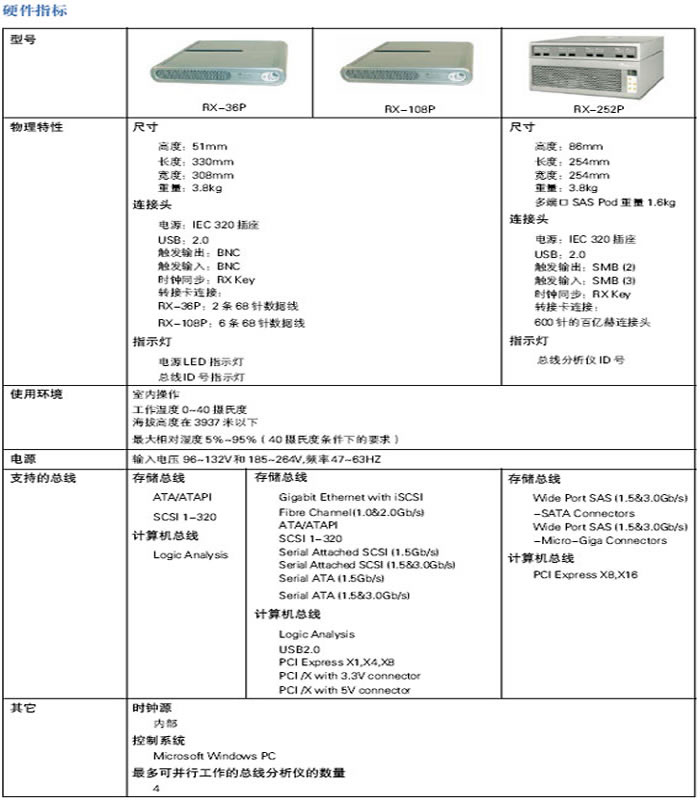 Bus Doctor? RX Analyzer以其獨特的Multi-Protocol平臺,提供電腦周邊及消費性電子產(chǎn)品的開發(fā)人員,一個功能強大并簡單好用的工具,并以最經(jīng)濟的方式,僅需更換不同的硬體介面(Pod),就可以測試不同的通訊協(xié)議(Protoco),包括儲存介面總線SD、SDIO、CE-ATA、MMC、ATA / ATAPI、SCSI/U320、SATA、SAS、Compact Flash,以及電腦總線USB、PCI Express GEN1/GEN2、PCI / PCIX、PCMCIA、CardBus、IEEE 1394a (Firewire/iLink)、Logic Analysis等等。