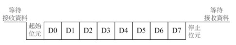 在UART的傳輸結(jié)構(gòu)中,起始位元固定為0,停止位元固定為1,所以接收端的動作是一直不斷地檢查傳輸線的狀態(tài)。