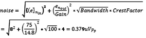 這就是CareFusion在采用AD8221儀表放大器的先前設(shè)計(jì)當(dāng)中所做的措施。AD8221的輸出噪聲是75nV/rt-Hz,而輸入噪聲則是8nV/rt-Hz。為了要降低大量輸出噪聲在參照到輸入端時(shí)所造成的影響,他們將AD8221設(shè)定至14.8的增益(噪聲計(jì)算的細(xì)節(jié)請(qǐng)參照公式1與2)。