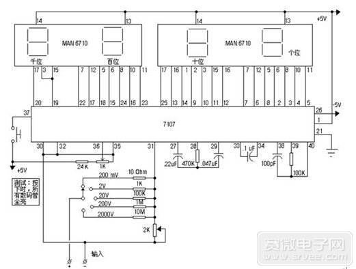 ICL7107是一塊應(yīng)用非常廣泛的集成電路。它包含3 1/2位數(shù)字A/D轉(zhuǎn)換器,可直接驅(qū)動LED數(shù)碼管,內(nèi)部設(shè)有參考電壓、獨立模擬開關(guān)、邏輯控制、顯示驅(qū)動、自動調(diào)零功能等。這里我們介紹一種它的典型應(yīng)用電路--數(shù)字電壓表的制作。其電路如圖。