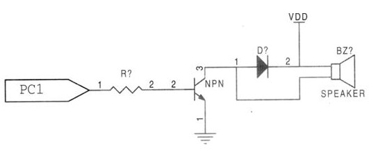 本電路設(shè)計的是峰鳴報警電路.當來自檢測到高于設(shè)定電壓時,控制口PC1為高電平時,系統(tǒng)發(fā)出報警。如圖所示。