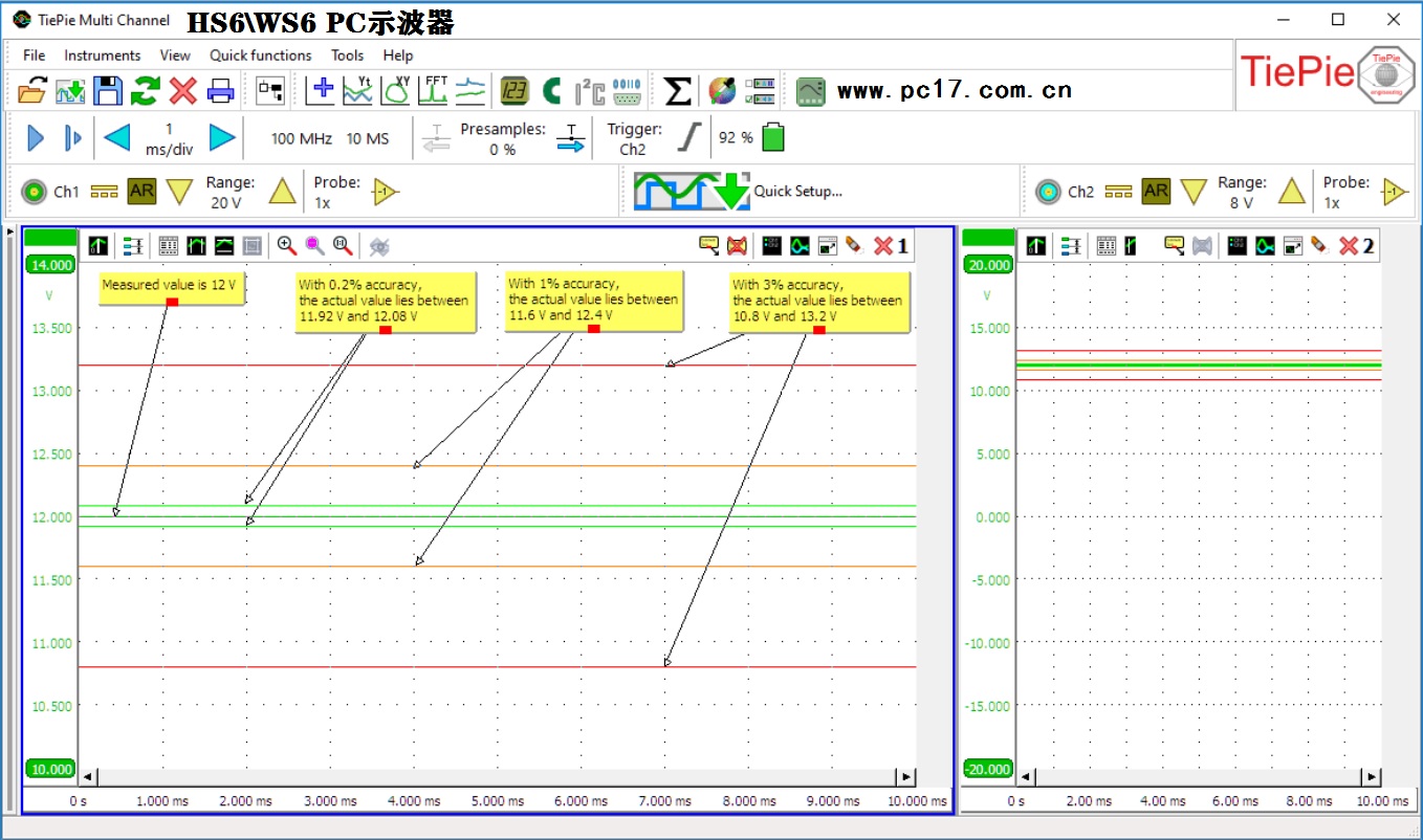 HS6\WS6基于PC的高分辨率、高精度示波器的精度根據(jù)型號(hào)規(guī)定為0.2%或0.25%。本規(guī)范在儀器調(diào)整后至少保證三年。
