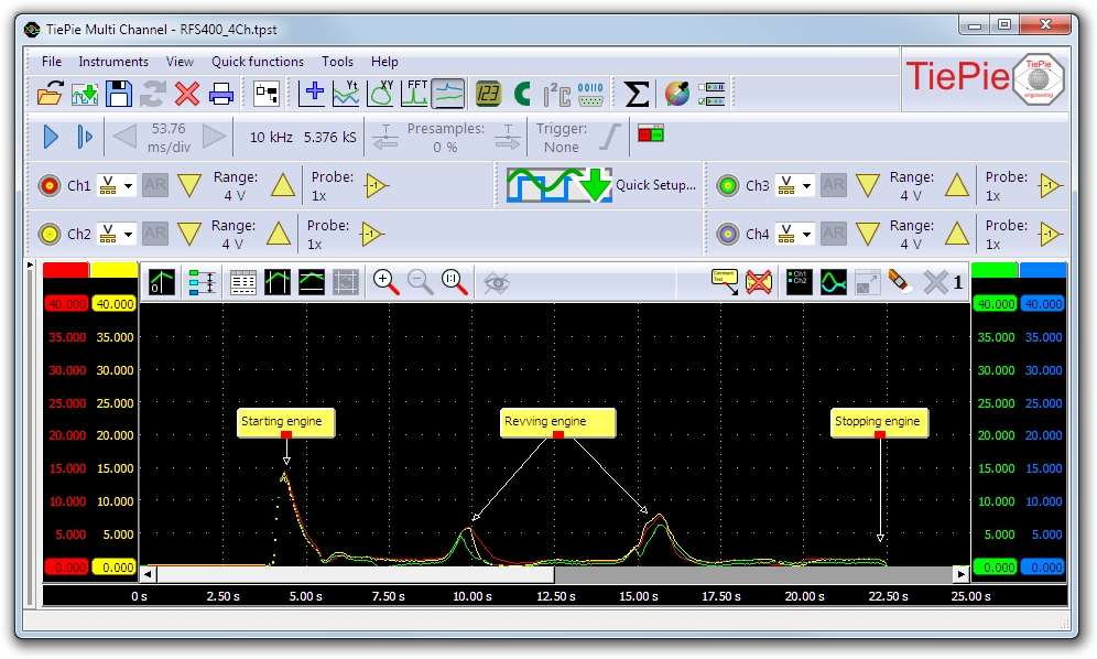 RFS400型柴油機(jī)回流流量傳感器有四個(gè)通道,其中只有三個(gè)通道用于此測(cè)量。連接柴油回流流量傳感器RS400和實(shí)驗(yàn)室范圍,見圖1: