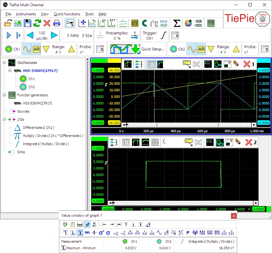 泰皮工程 多通道示波器軟件 有幾個(gè) I/O街區(qū) 它可以用來處理測量數(shù)據(jù)。為了這個(gè)申請, I/O的區(qū)別 …… 綜合主管/干事 以及 乘以/除以I/O 會(huì)被使用。