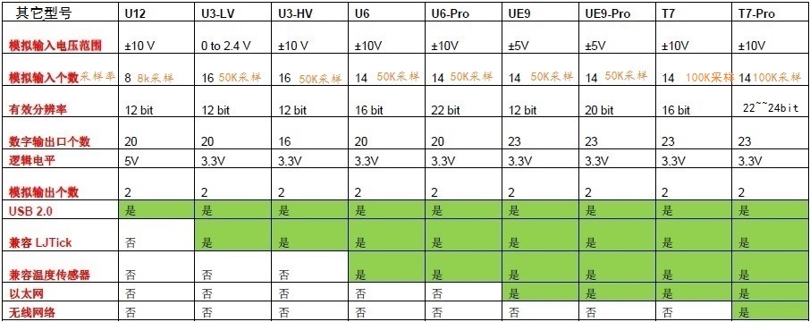 CB37 標(biāo)簽 X2 X3 X4 X5 AIN0-13 AIN0-3, AIN120-127 AIN48-61 AIN72-85 AIN96-109DAC0-1 DAC0-1 AIN62-63 AIN86-87 AIN110-111FIO0-7 FIO0-7 AIN64-71 AIN88-95 AIN112-119 數(shù)據(jù)采集器U6、T7用于從熱電偶、應(yīng)變計(jì)、橋接電路、編碼器等獲取信號(hào)。通過(guò)儀器放大輸入,以及軟件可選增益設(shè)置,U6、T7提供了一種經(jīng)濟(jì)有效的方法來(lái)測(cè)量模擬信號(hào),這是傳統(tǒng)12位數(shù)據(jù)采集器產(chǎn)品無(wú)法解決的。應(yīng)用包括實(shí)驗(yàn)室研究、工業(yè)控制和監(jiān)測(cè)以及原使開(kāi)發(fā)。有測(cè)試和記錄數(shù)據(jù)的應(yīng)用程序。驅(qū)動(dòng)可在Windows,Linux,Mac上使用例程:C/C++, C#, Delphi, Java, LabVIEW,MATLAB, Python, VB.NET不需要驅(qū)動(dòng),使用任何支持的TCP/IP平臺(tái)。數(shù)據(jù)采集模塊能夠括展的型號(hào):