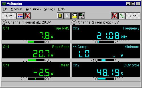 | 特別的設計使控制示波器變得非常容易操作和直觀。 然后就可擴展和壓縮垂直軸。 在垂直軸上按住鼠標的右鍵,彈出一個菜單,在彈出的菜單中所有的通道參數可改變。 | |