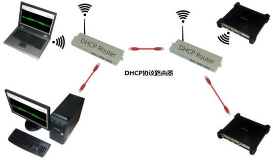 第八種:用多個以太網(wǎng)示波器在不同位置進行長距離電隔離測量高速流盤數(shù)據(jù)采集與采樣率高達20毫秒/秒是可能的。在不同的網(wǎng)絡中一臺或多臺遠端以太網(wǎng)示波器可連接到一臺電腦或多臺電腦以太網(wǎng)示波器由其內(nèi)置UPS電池、以太網(wǎng)電源或外部電源供電。
