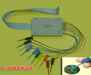 LA5000邏輯分析儀備有全套的彩色測試夾和連接線,測試夾頭部由二個(gè)鋼針構(gòu)成非常堅(jiān)硬,并能變化為各種尺寸和形狀,這種精密的測試夾,能測試連接密度非常高的IC,或者表面連接非常困難的測試, 測試線能連接測試夾的兩端,如圖: