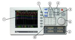 | 1. 內(nèi)置6英寸TFT彩色LCD顯示器,中英文菜單,不同于虛擬邏輯分析儀,可顯示波形、設(shè)置、參數(shù)等。 2. 32數(shù)據(jù)通道輸入,提供100MHz狀態(tài),250MHz定時(shí),2MBytes總存儲深度,每通道最大為512Kbits。 3. 多種信號觸發(fā)方式:預(yù)觸發(fā)、延時(shí)與連續(xù)等觸發(fā)方式。另外具有高度級按階觸發(fā),迅速捕獲感興趣的數(shù)字信號。 4. 多種捕獲方式EasyDebugTM功能,單次、連續(xù)與存儲等捕獲方式,容易對數(shù)字電路和數(shù)字信號進(jìn)行糾錯(cuò)工作 | 5.設(shè)置和操作簡便,Auto-scale和Auto-store功能,像市面上最流行的數(shù)字示波器那樣使用和攜帶。 6. 飛梭鍵,用來配合各項(xiàng)功能的控制和設(shè)置,操作更加便捷。 7. 文本輸入鍵,用來輸入數(shù)字及編輯文字,輕松定義通道名稱。 8. 具有觸發(fā)輸出功能,可以輸出到另一臺儀器,用來做同步或擴(kuò)展使用。 9. USB2.0設(shè)備端口與OLA應(yīng)用軟件配合,無縫連接PC,支持自動(dòng)測量及遠(yuǎn)程顯示和存檔。 10. 超薄型,厚度僅為90mm,節(jié)約工作臺或桌面上的寶貴空間。 |