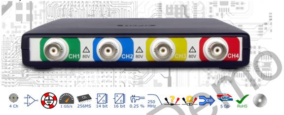 250MHz帶寬,1 GS / s采樣,8~16位 USB3.0 PC差分示波器
