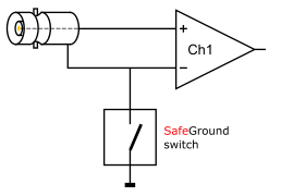 當(dāng)您想要使用單端輸入進行測量時,您的輸入端連接到示波器和計算機的地(探頭的鱷魚夾直接連接到地)。輸入通道也相互連接。當(dāng)將探頭的鱷魚夾不經(jīng)意的連接到測試對象,不接地平面,而在電壓升高的點上時,短路電流將流經(jīng)探頭,示波器和計算機。這可能會對測試對象,范圍和計算機造成嚴重損害。安全地功能(SafeGround)完全避免了這一點,并保護你設(shè)備和計算機免受很多侵害。HandyscopeHS6 DIFF示波器可以為每個通道單獨啟用安全地功能(SafeGround)。