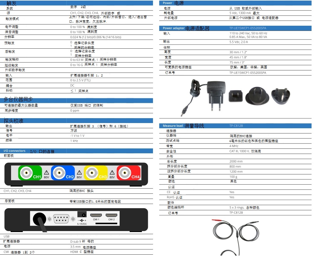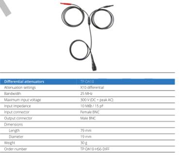 測量導(dǎo)線:4 x TP-C812B隔離BNC(陰)到蕉形差分測量導(dǎo)線
