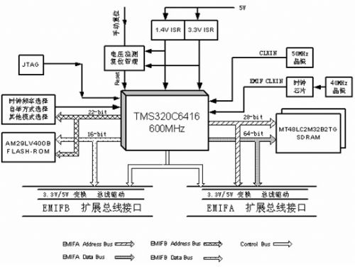 (可直接擴充到1MBytes)。此外,板上還留有EMIF接口和JTAG接口各一個。