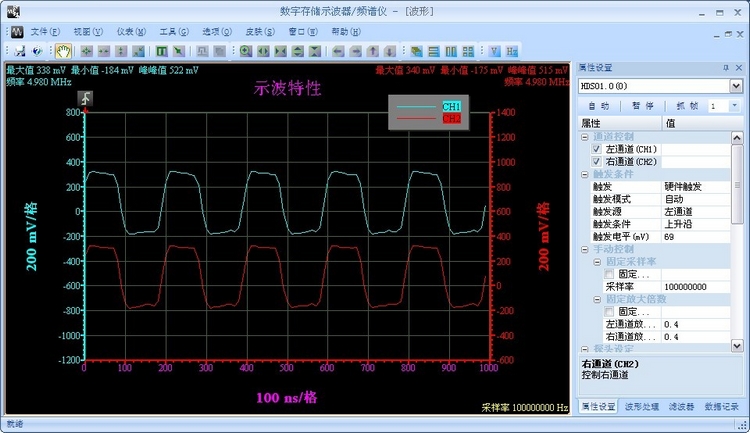 6、通過軟件界面進(jìn)行各種切換操作;(時間,刻度,電壓刻度,關(guān)閉與開啟通道等);