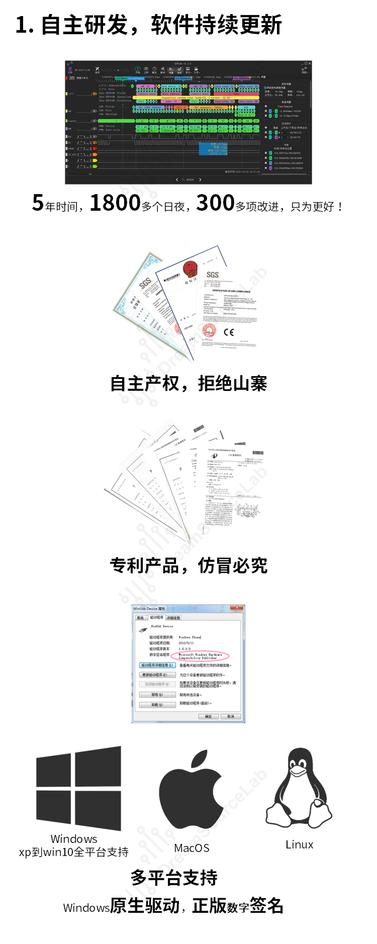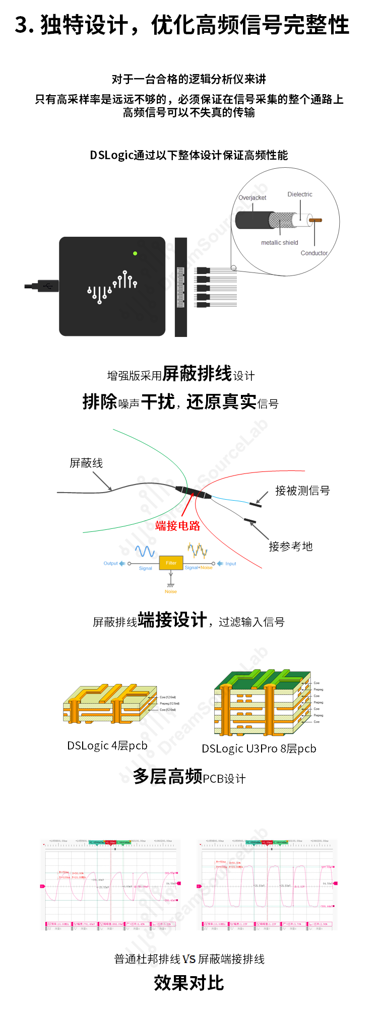 DSLogic邏輯分析儀 5倍saleae帶寬 最高1GSa/s采樣 32通道基于PC的邏輯分析儀