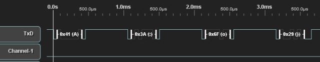 本例中UART字符串: A, :, o, ), 捕獲“o”字符。