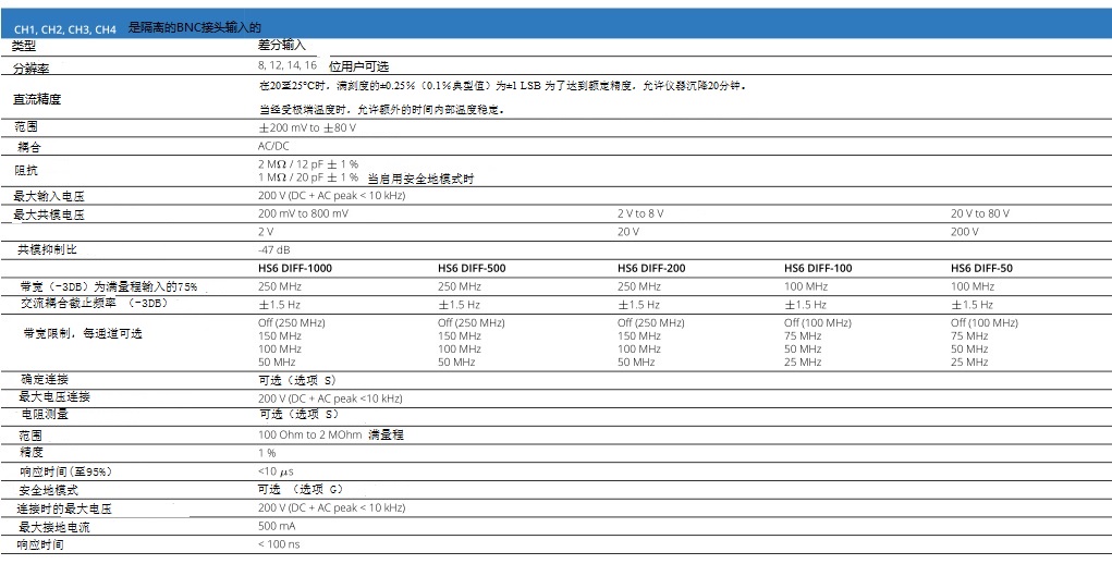 | HS5-110MX USB或 以太網(wǎng) | 2 | 12位分辨率時:單通道100 MS/s 12位分辨率時:雙通道50 MS/s 14位分辨率時:雙通道20 MS/s 16位分辨率時:雙通道1.25 MS/s | 12/14位時:單通道5 MS/s 12/14位時:雙通道2 MS/s 14位時:雙通道2 MS/s 16位時:雙通道1.25 MS/s | 10MHz | 雙通道32 MB 單通道64MB | 15800元 |